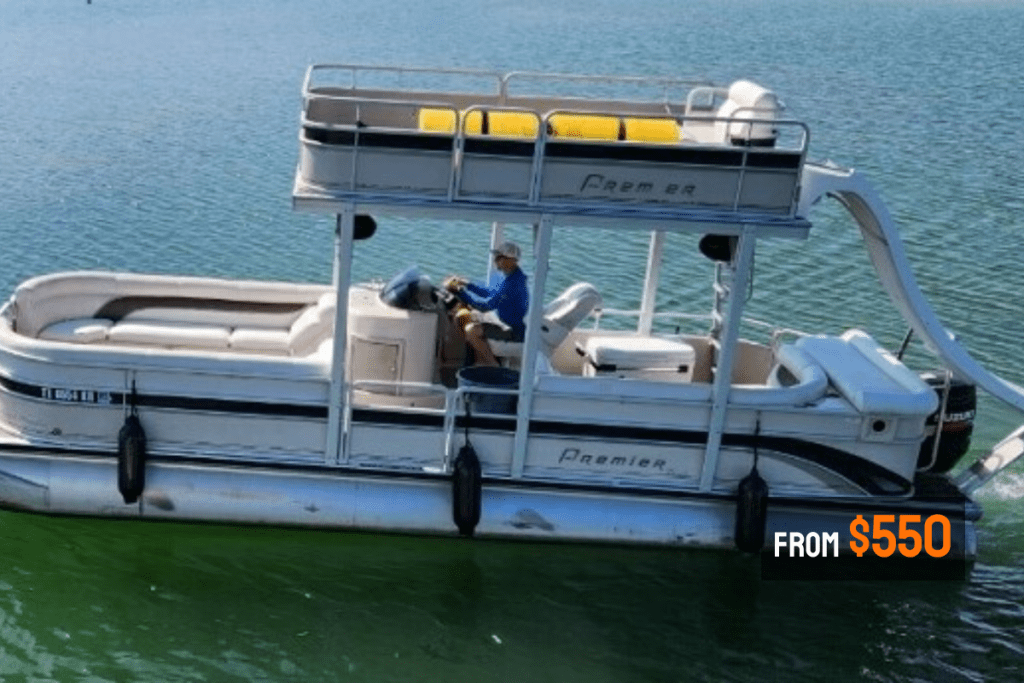 Our double decker pontoon boats are all equipped with water slides and are the perfect way to experience Lake Travis! Every pontoon rental includes a captain, lily pads, premium Bluetooth sound systems and and extra large ice chest for your favorite beverages.